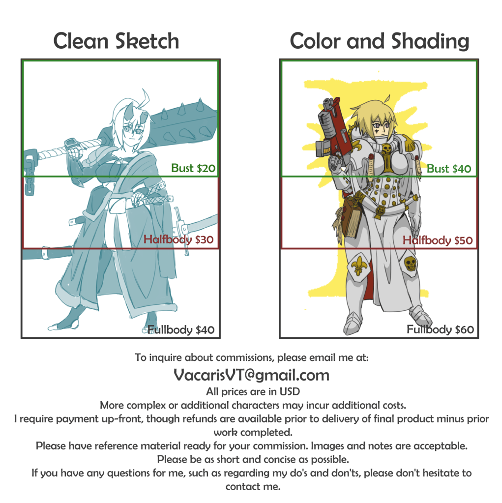 I am also available for art Commissions. If interested please contact me at VacarisVT@gmail.com